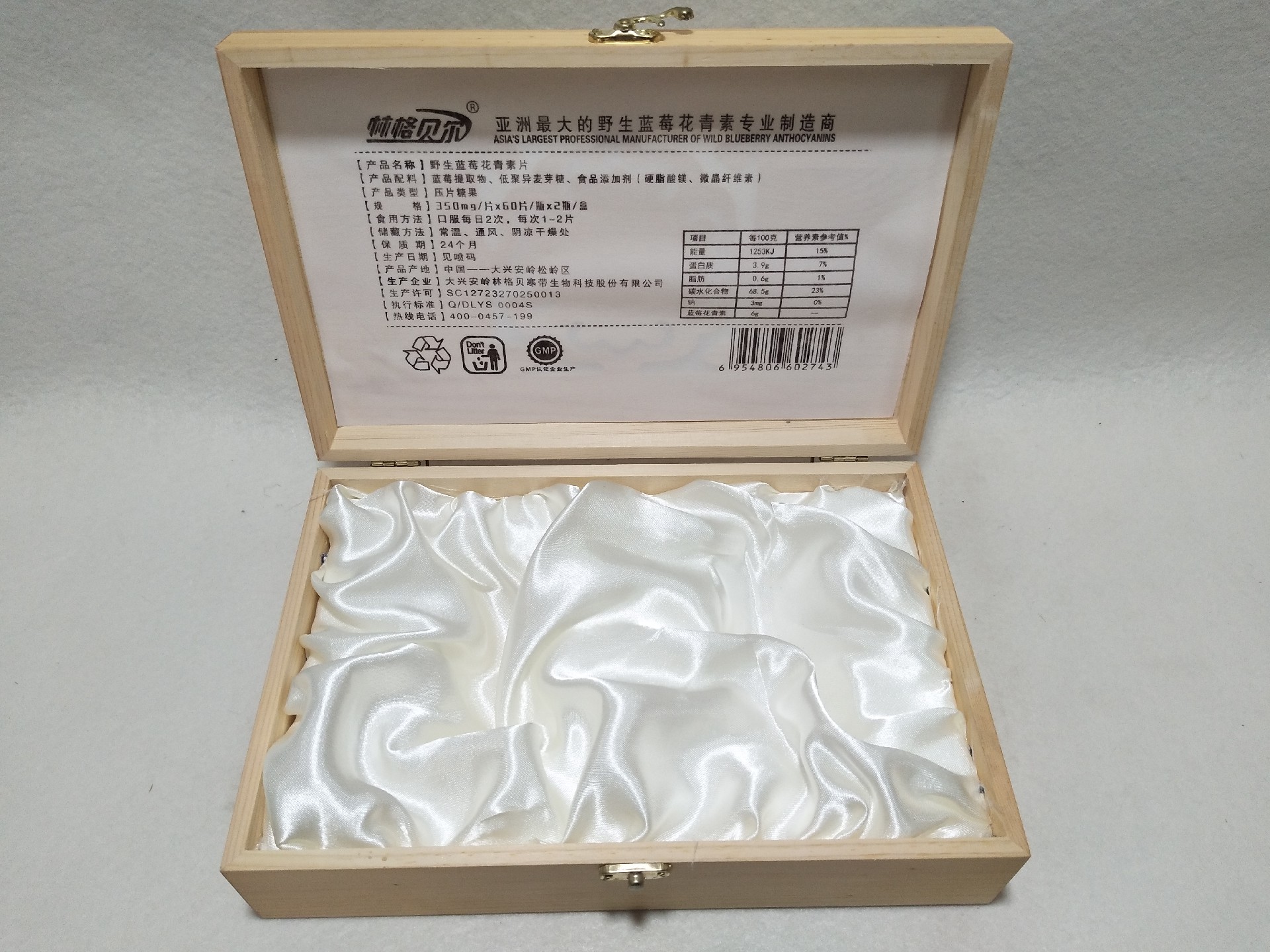 尺寸:鏤空式藍莓葉黃素花青素片包裝木禮盒