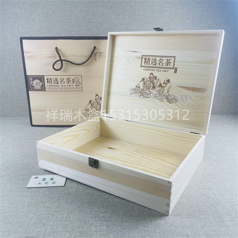 信陽毛尖茶禮品盒裝-經典老款-自然款,松木實木禮盒,自然環保,圖案自然清晰。